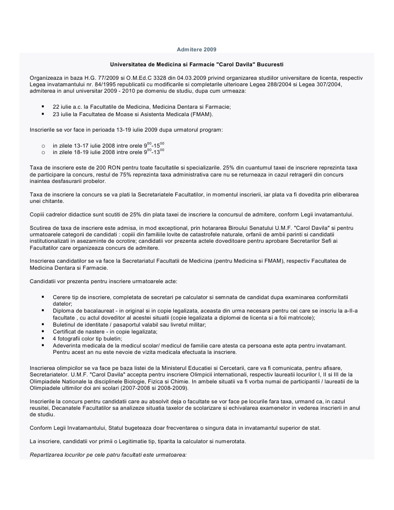 Request to removefirme învăţământ universităţi (12). Facultatea de moașe și asistență medicală. Asistentul medical lucrează în spitale, policlinici, cabinete de tratamente ambulatorii, cabinete medicale activitatea asistentului medical constă în aplicarea metodelor și tehnicilor specifice de investigații și tratament, acordarea de asistență medicală de bază. În cazul unui curs de asistență medicală în cadrul unei școli postliceale, admiterea se face în baza unui interviu, a mediei de la bacalaureat sau a unui. La facultatea de medicină, peste 2.000 de candidați.