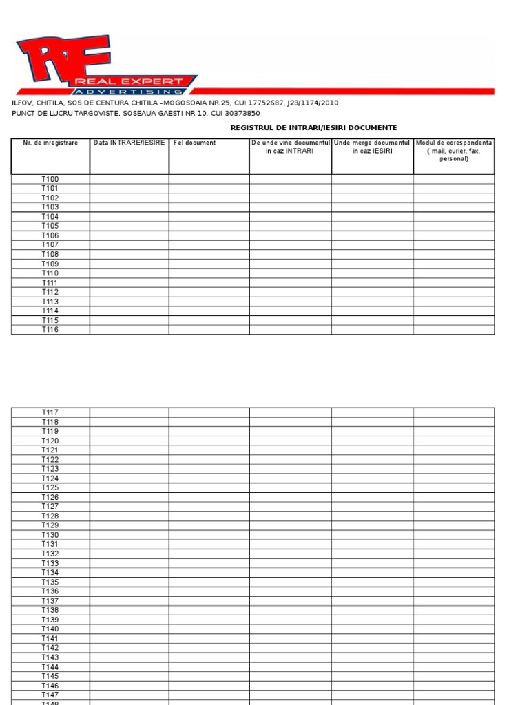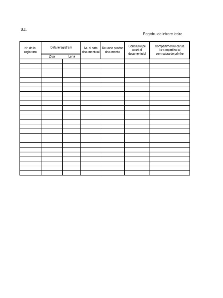 Registru Intrari Iesiri Documente Model