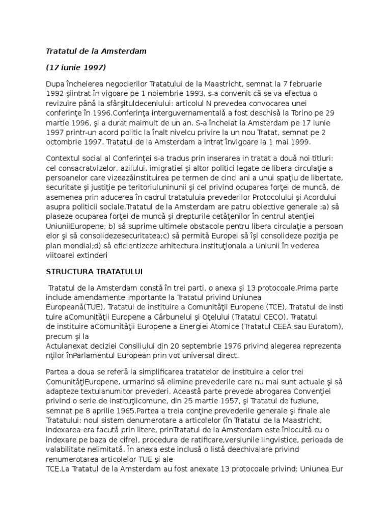 vizitati articolul complet aici : 1 day ago Acesta a extins puterea parlamentului european în sensul coparticipării acestuia la procesul decizional împreună cu consiliul în privința mai multor politici de la consumatori până la probleme de mediu. La tratatul de la amsterdam au fost anexate 13 protocoale privind: We are a sharing community.